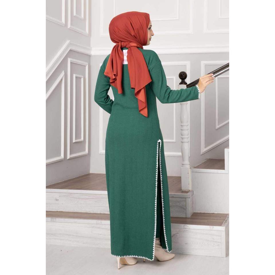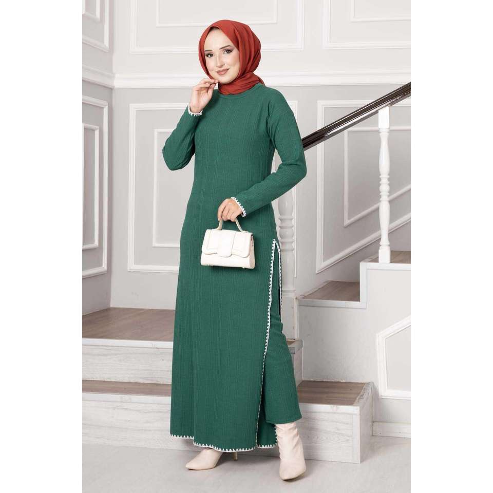 ชุด2ชิ้นสีมรกตพร้อมวัสดุผ้าลายด้านข้างและการตกแต่งลวดลาย