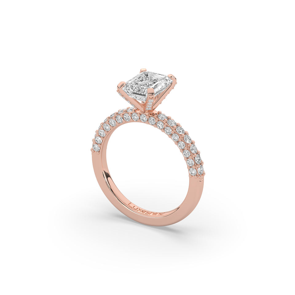แหวนเพชรเม็ดเดี่ยวทรงเหลี่ยมมรกต 2.932 กะรัต เพชรเลี้ยงในห้องปฏิบัติการ ดีไซน์น้ำหนักเบาไม่ซ้ำใคร ทอง 10KT 14KT แหวนหมั้น