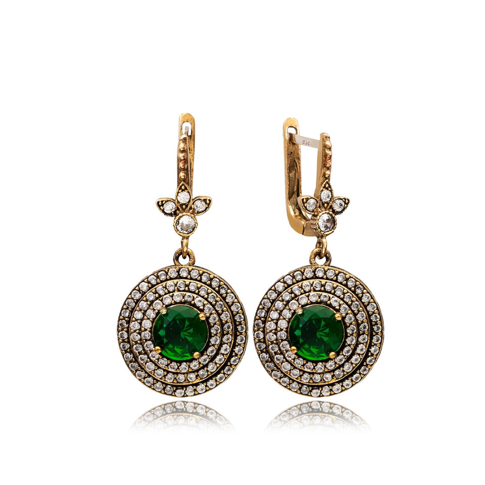 มรกต CZ ทรงกลมสไตล์ออตโตมันขายส่งต่างหูแท้เครื่องประดับเงิน 925