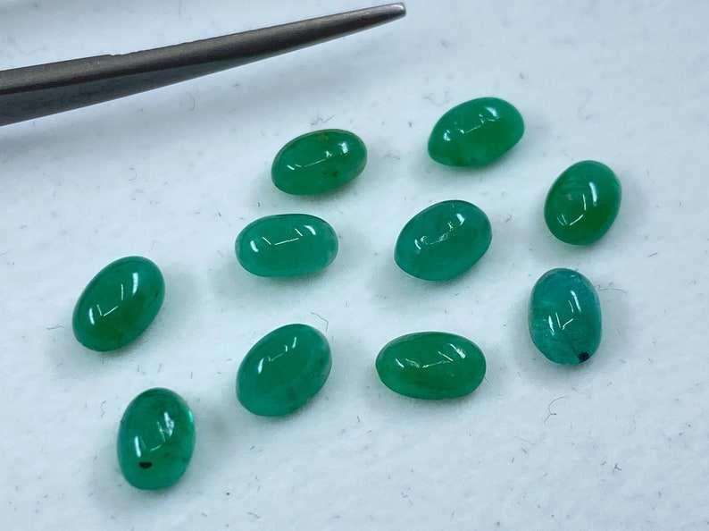 พลอยมรกตทรงรีแบบคาโบชอง ขนาด 6x4 มม. ปรับขนาดแล้ว สำหรับทำเครื่องประดับ จำนวนมาก