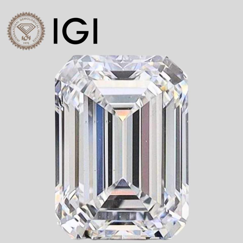 เพชรทรงเอเมอรัลด์ 1.04 กะรัต สี F ความสะอาด VS2 เพชรเพาะเลี้ยงในห้องปฏิบัติการ รับรองโดย IGI สำหรับทำเครื่องประดับ