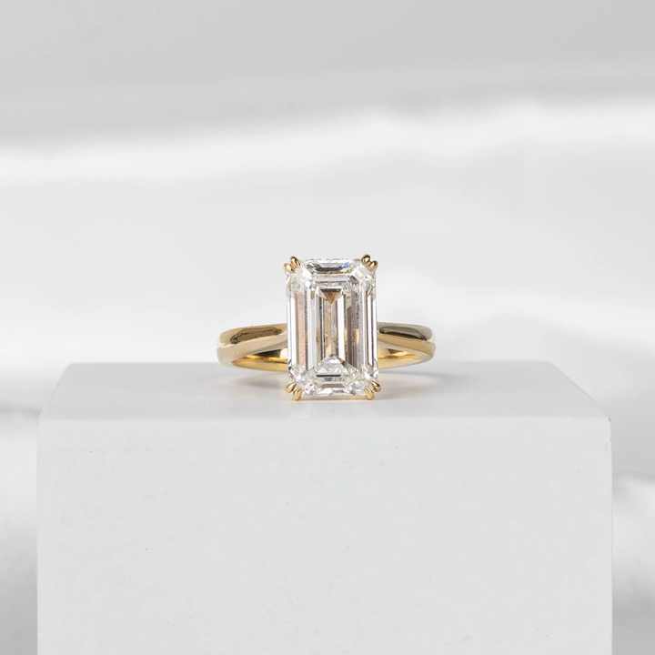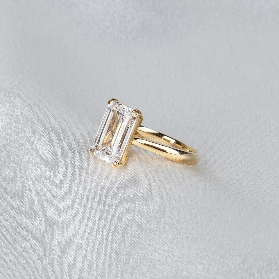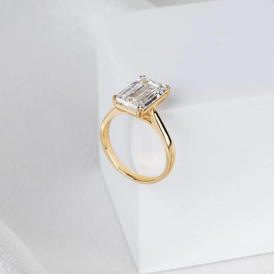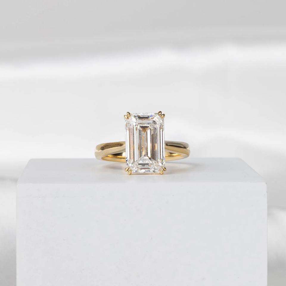 แหวนเพชรทรงเอเมอรัลด์ 4 กะรัต เพาะเลี้ยงในห้องปฏิบัติการ รับรองโดย IGI ทองคำขาว 14K วงบาง แหวนเพชรเม็ดเดี่ยวสำหรับหมั้น แหวนแต่งงาน เครื่องประดับเจ้าสาว