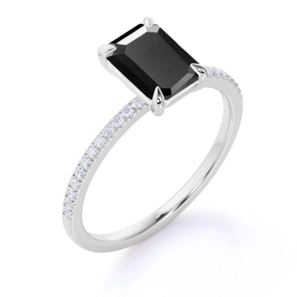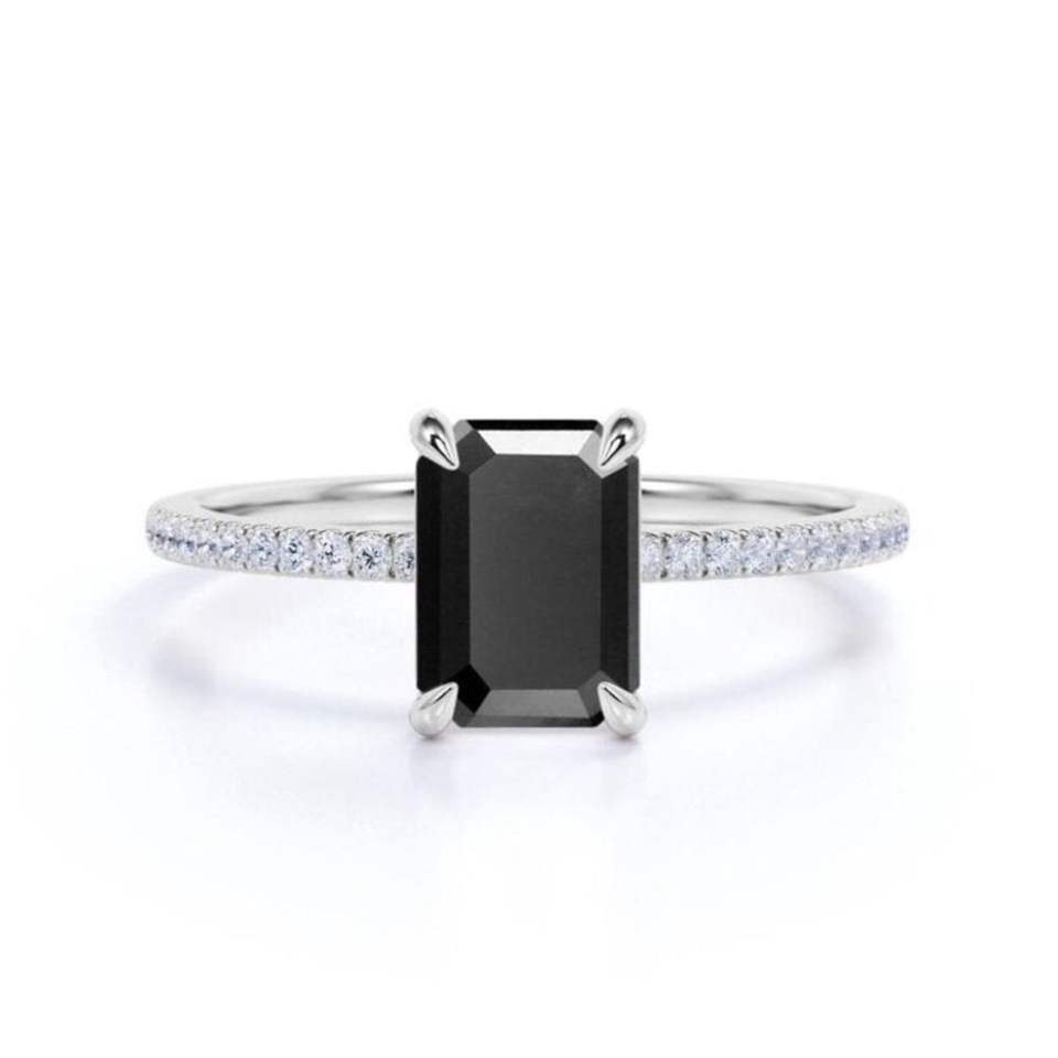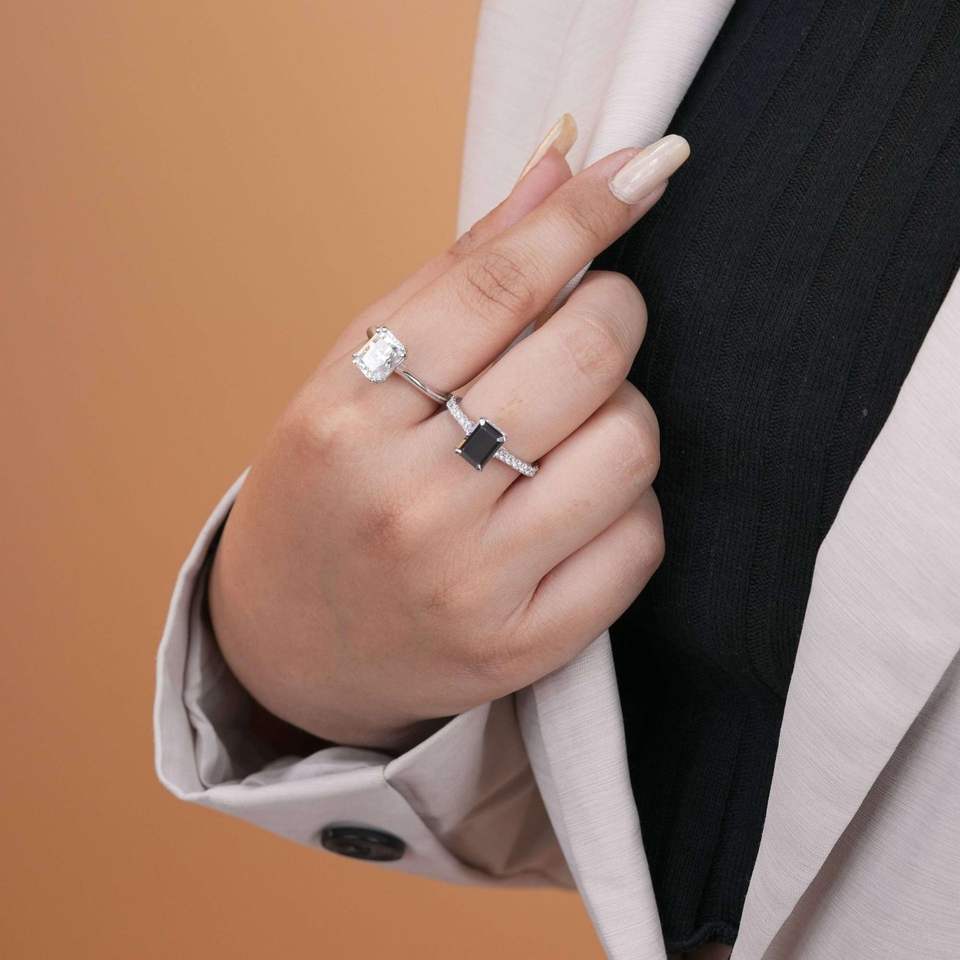 แหวนเพชรสีขาวและสีดำตัดมรกตพร้อมการตกแต่ง