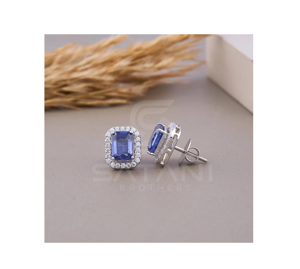 ต่างหูทรงเอเมอรัลด์คัทประดับเพชร CZ สีน้ำเงิน ตัวเรือนเงินแท้แบบเกลียว ดีไซน์หรูหรา ระยิบระยับ เหมาะสำหรับใส่ในชีวิตประจำวันและโอกาสพิเศษ