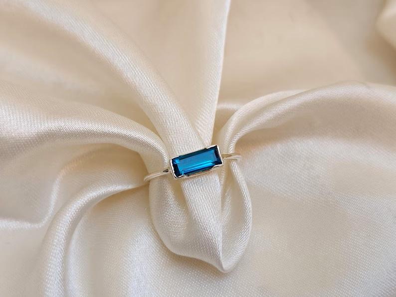 แหวนพลอยทรงเหลี่ยมมรกต เงินแท้ 925 ชุบทอง ของขวัญวันเกิด/วันครบรอบ สไตล์มินิมอล