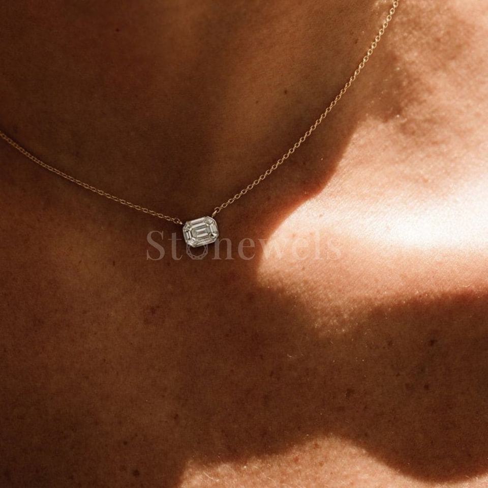 หมายเลขรุ่น:Emerald Cut Diamond Necklace-Silver