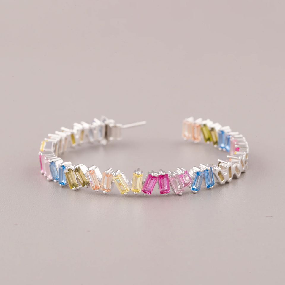 ต่างหูแบบห่วงประดับเพชรสีรุ้งประดับเพชรแบบทันสมัยสำหรับสตรี
