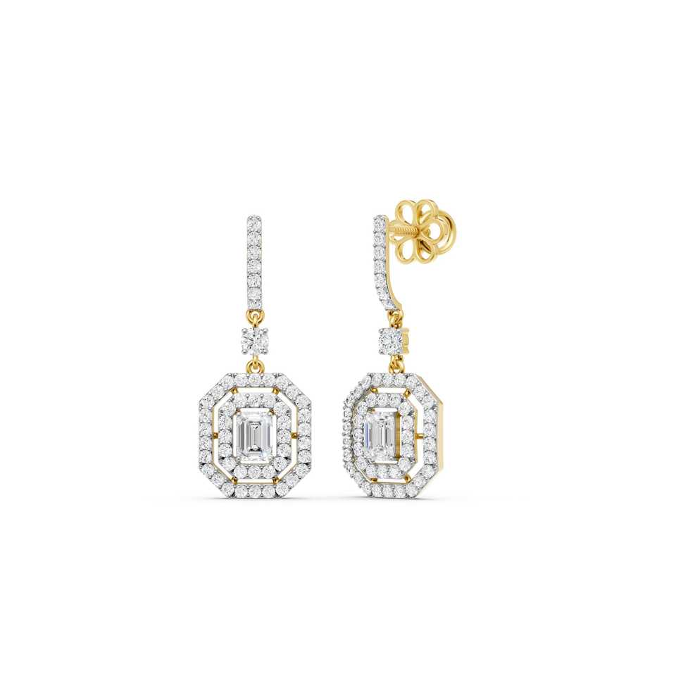 Octagon Halo Drop Earrings