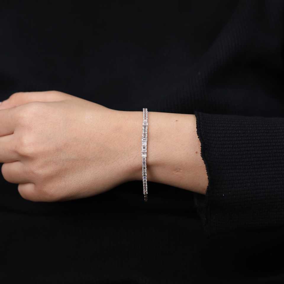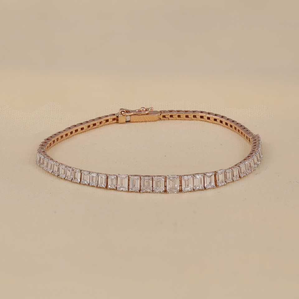 กำไลข้อมือเพชรทรงเหลี่ยมมรกต เพชรเลี้ยงในห้องปฏิบัติการ เงินสเตอร์ลิงและทอง 2.13 กะรัต สี EF ความสะอาดระดับ VS สีเหลือง ขาว ชมพู