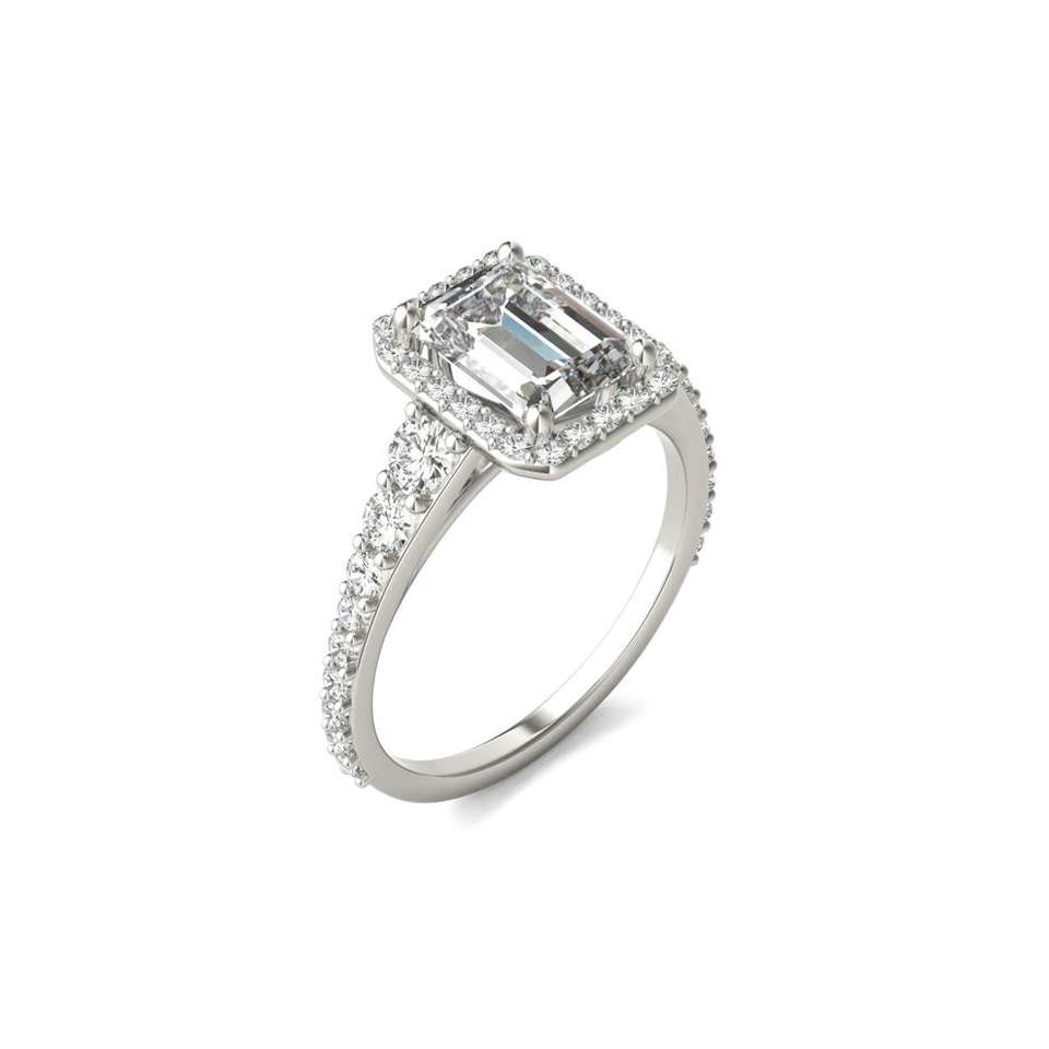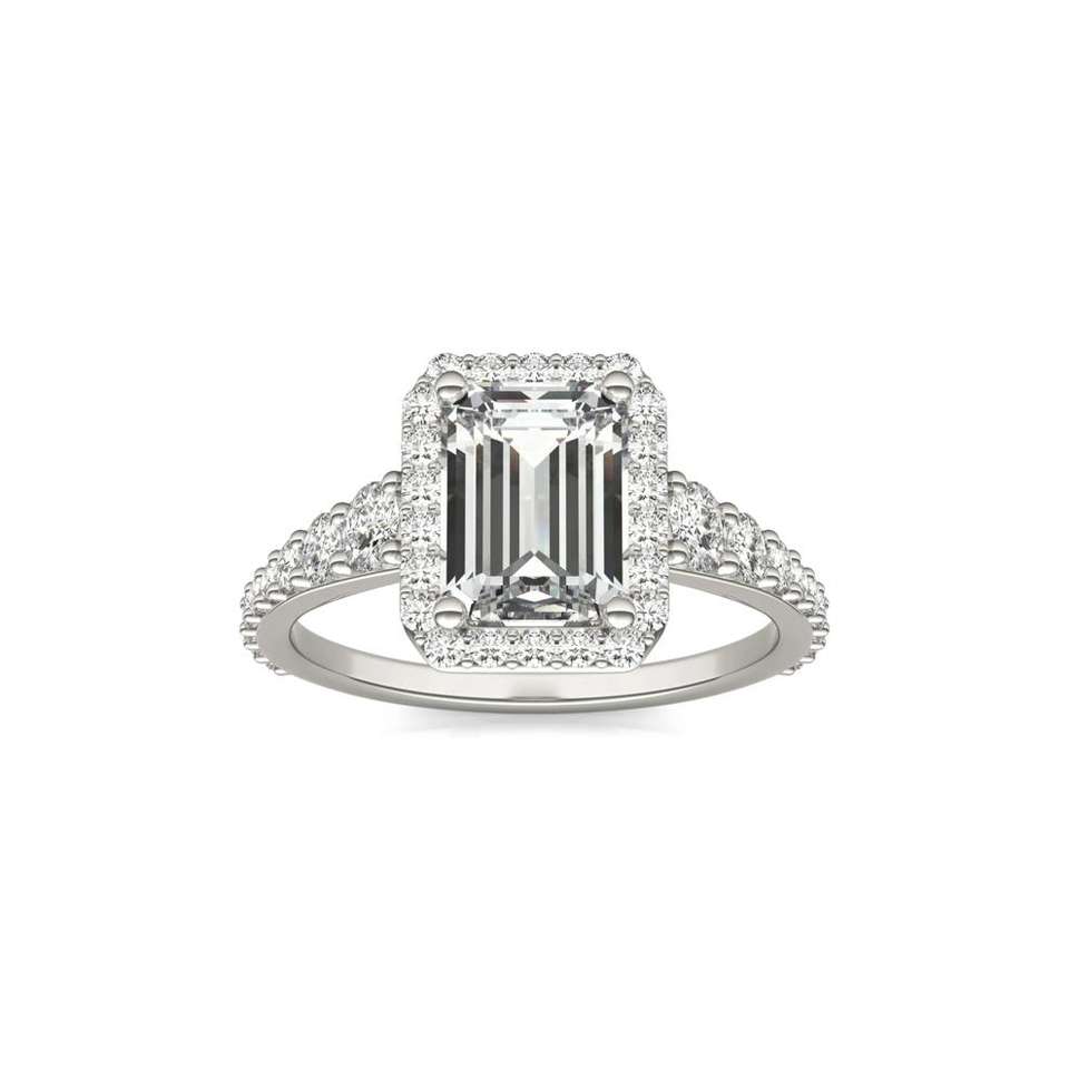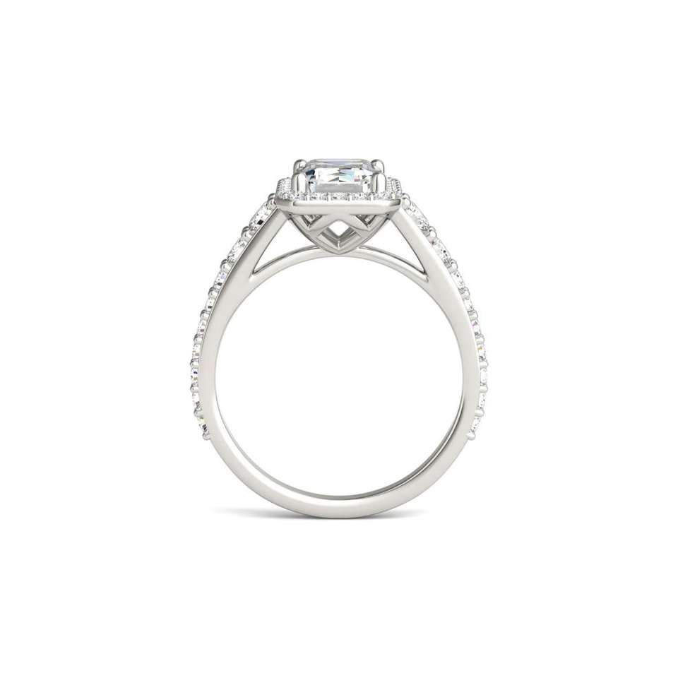 แหวนหมั้นเพชรทรงเอเมอรัลด์คัทเพาะเลี้ยงในห้องปฏิบัติการ ประดับด้วยเพชรแบบฮาโล ได้รับการรับรองจาก IGI น้ำหนัก 2.5 กะรัต ทองคำขาว 10K วงแหวนแบบสปลิตพาเว่ ดีไซน์หรูหราสำหรับงานแต่งงานและวันครบรอบ