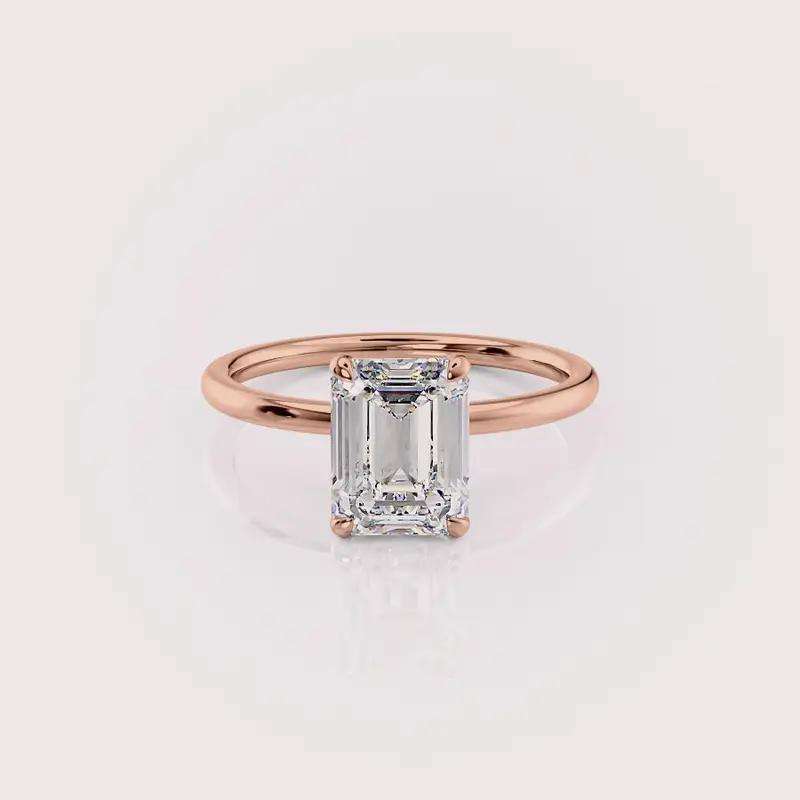 Emerald Cut Lab Grown Diamond Solitaire Ring in 18k Rose / Yellow / White Gold