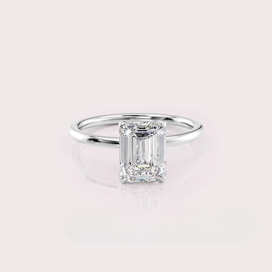แหวนเพชรเม็ดเดี่ยวทรงเอเมอรัลด์คัท เพาะเลี้ยงในห้องปฏิบัติการ ตัวเรือนทองคำ 9k สีโรสโกลด์ / เยลโลว์โกลด์ / ไวท์โกลด์