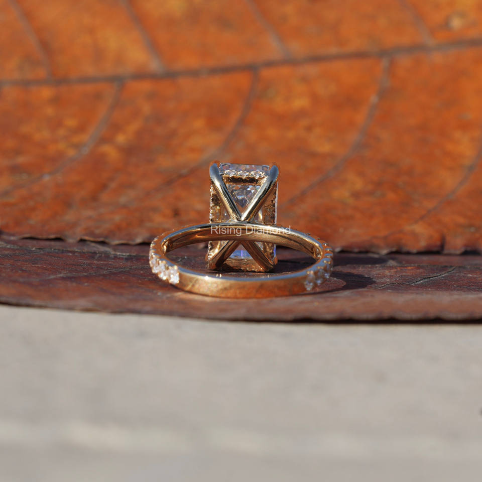 ชุดแหวนทองสีเหลืองซ่อนรัศมีแหวนหมั้นตัดด้วยมรกตปลูกเพชรสำหรับเป็นของขวัญครบรอบแต่งงานของเธอ CVD แหวนเพชร