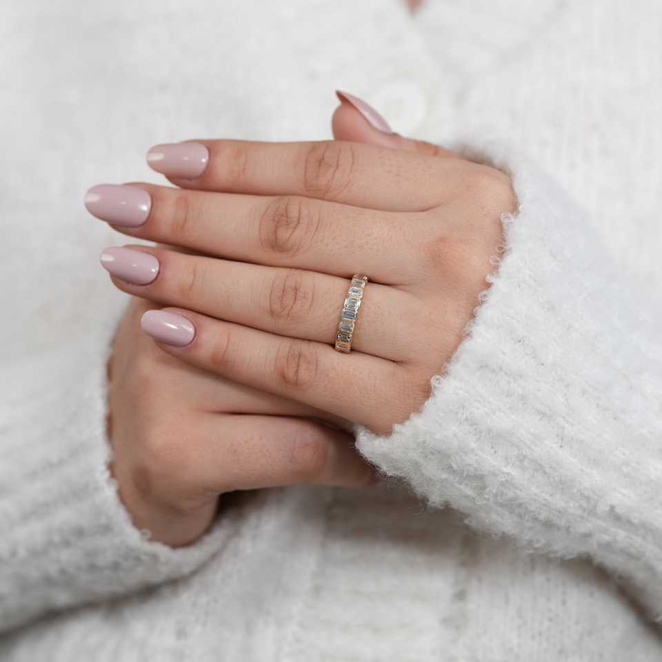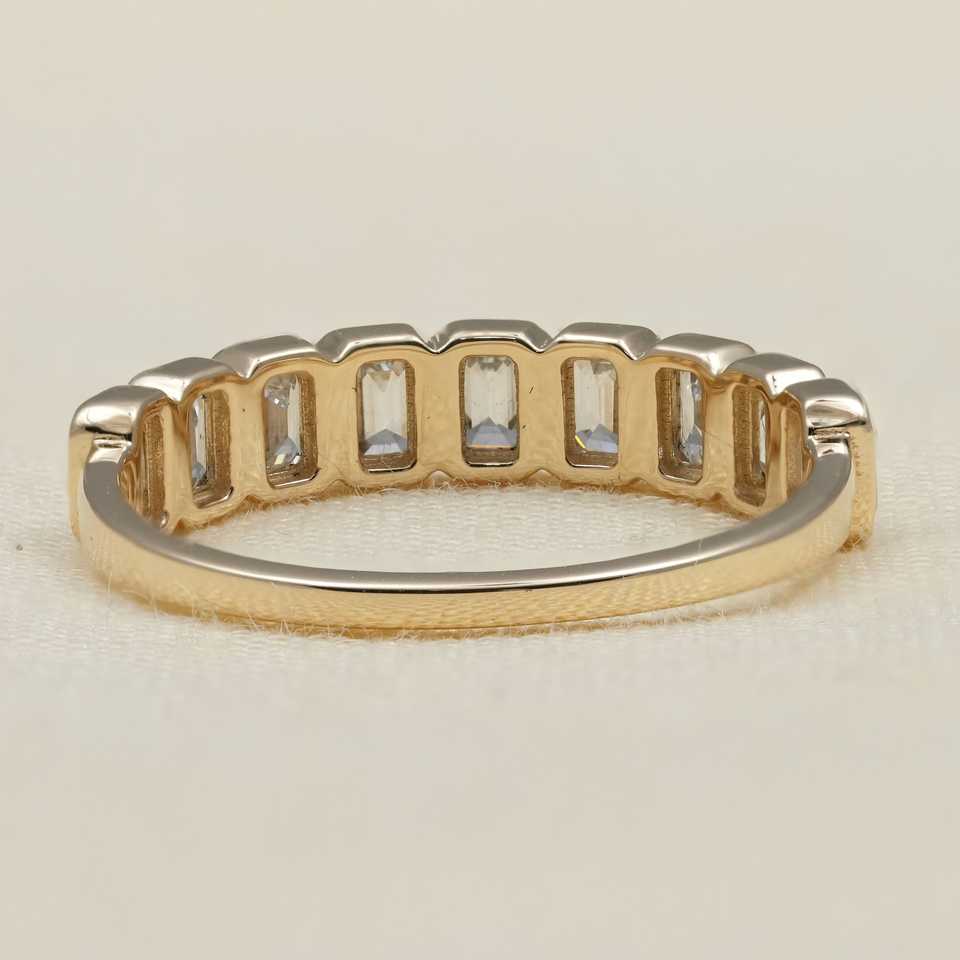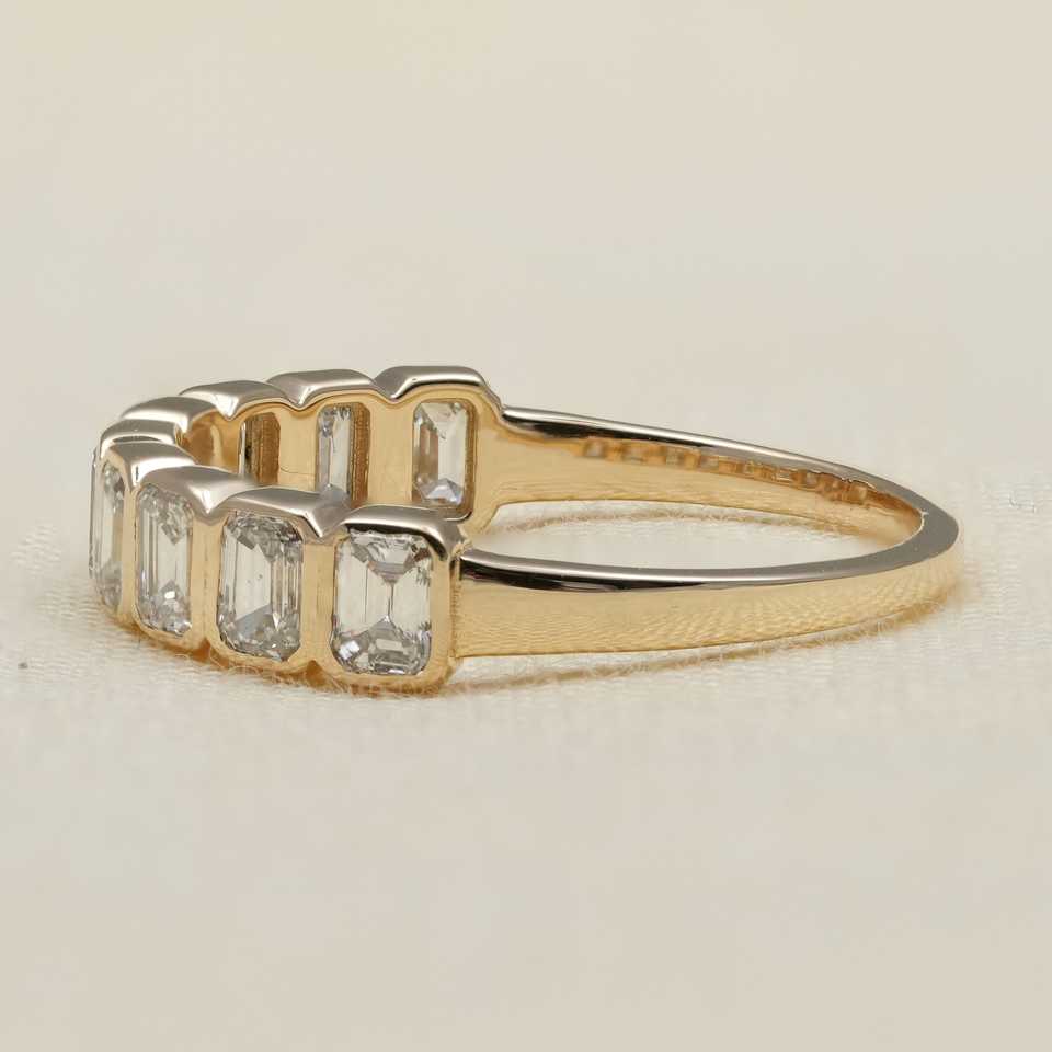 แหวนแต่งงานเพชรทรงเอเมอรัลด์คัท เพชรเลี้ยงในห้องปฏิบัติการ ประดับเพชรแบบเบเซล สี F เหลือง/ขาว/โรสโกลด์ เงินสเตอร์ลิง/แพลตตินัม/ทอง