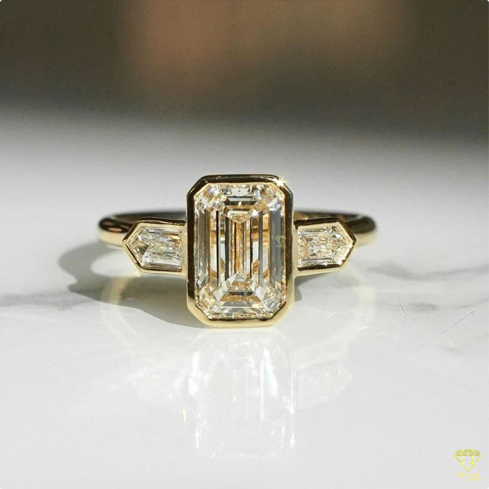 แหวนแต่งงานสามชิ้นทำจากหินสีเขียวมรกตสำหรับผู้หญิงไอเดียของขวัญครบรอบ