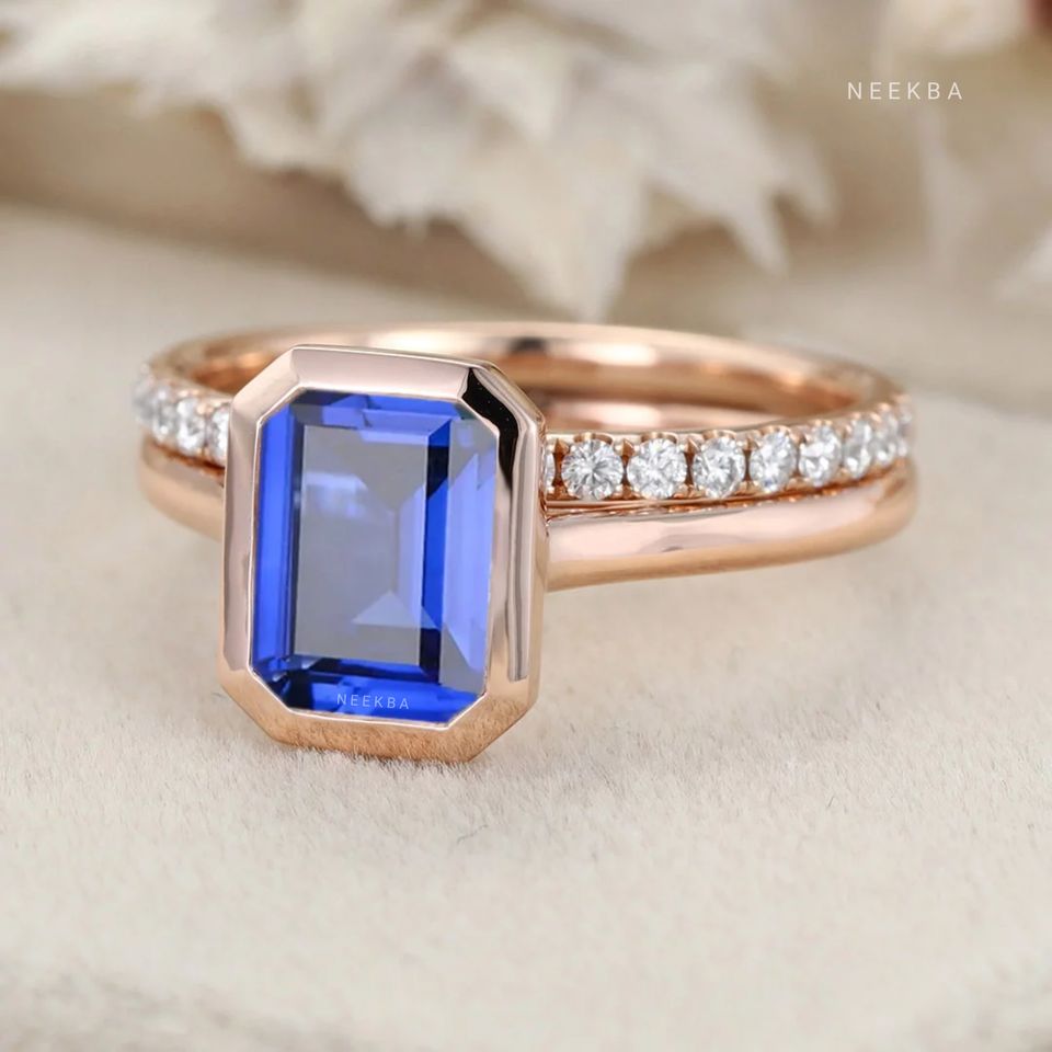 ชุดแหวนแต่งงานไพลินสีน้ำเงินประเภทแหวน