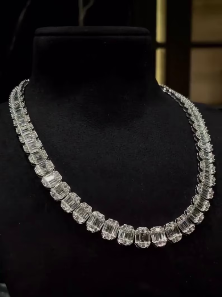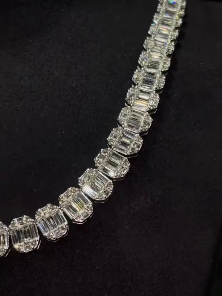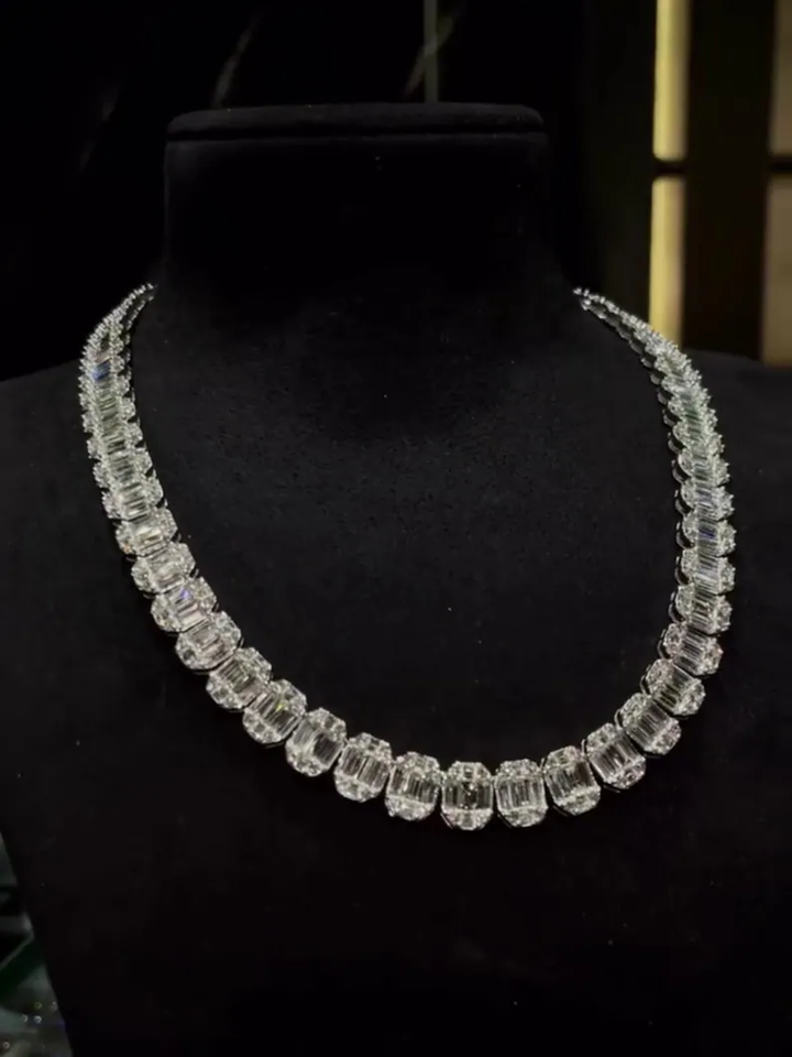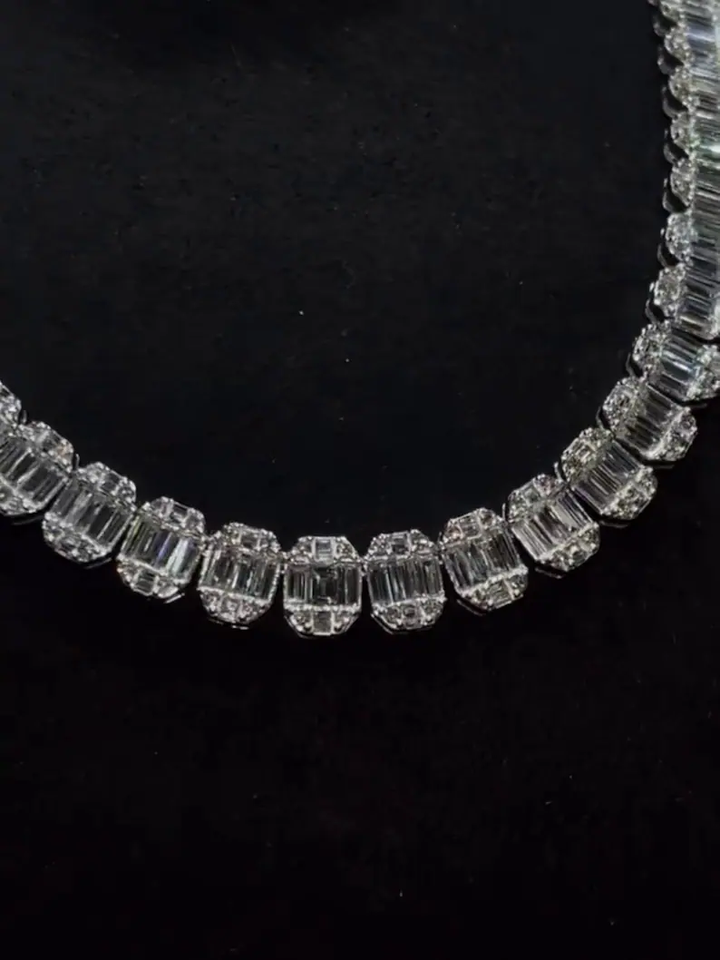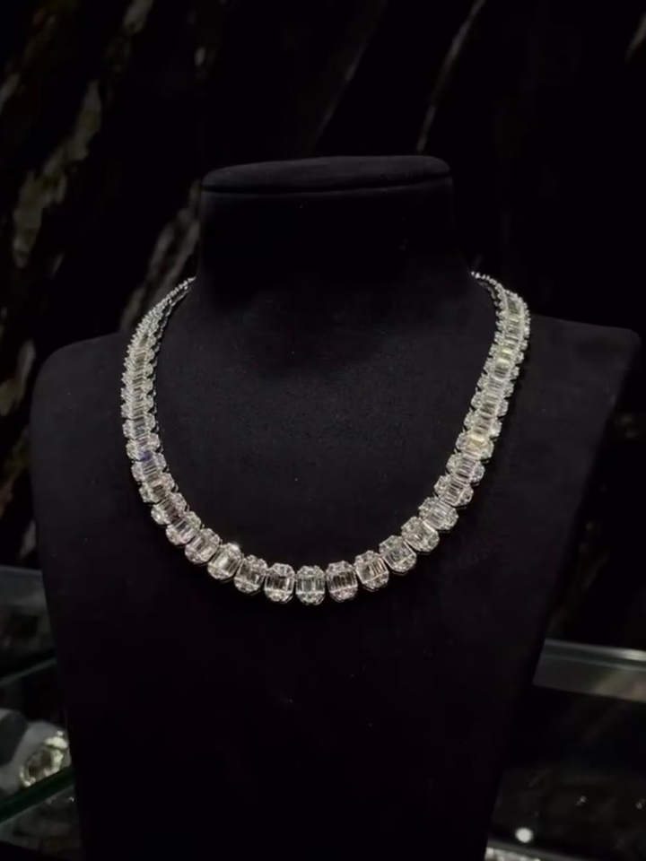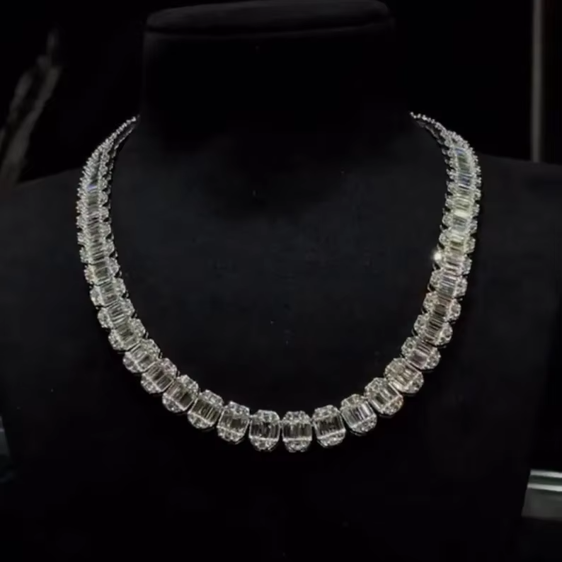 Emerald Cut Moissanite Diamond Tennis Necklace 925 Silver Iced Out Luxury Statement Chain Jewelry