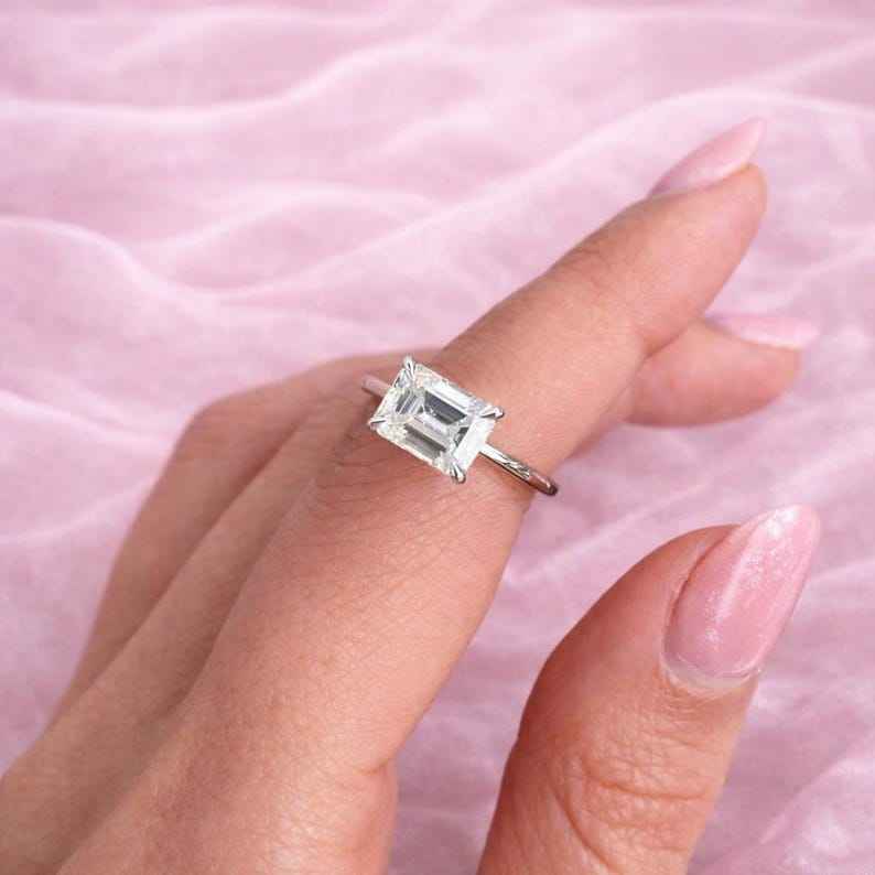 แหวนหมั้นมอยซาไนต์ทรงเอเมอรัลด์ แหวนสัญญา รับรองโดย IGI ของขวัญเทศกาลสำหรับผู้หญิง วันครบรอบแต่งงาน ใส่ได้ทุกวัน
