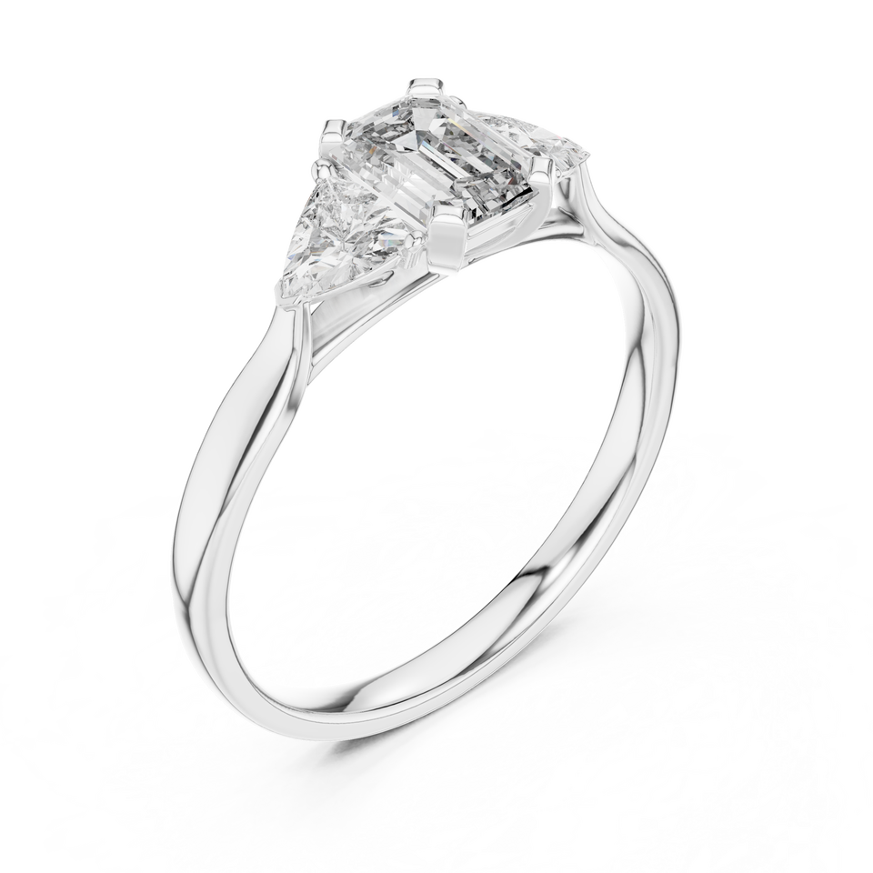 แหวนหมั้นเพชรโมอิสซาไนต์ทรงเอเมอรัลด์สามเม็ด ชุบทอง 14k เงินแท้ 925 ประดับเพชรทรงไตรลิออนด้านข้าง สำหรับผู้หญิง