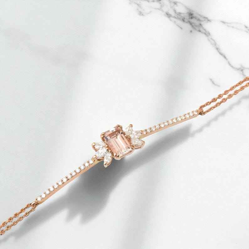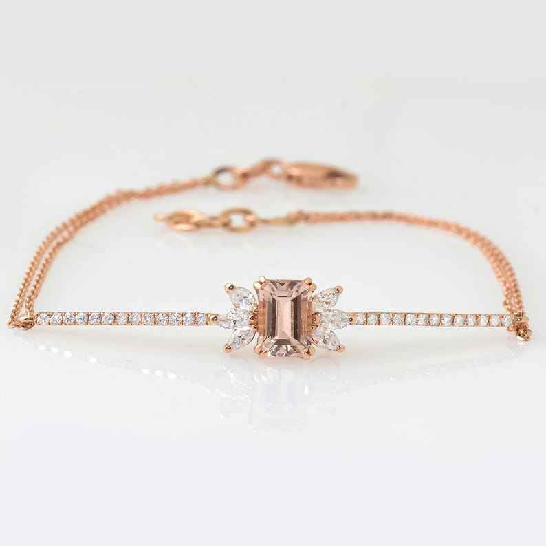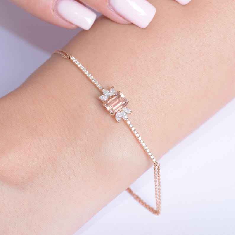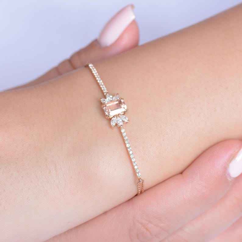 สร้อยข้อมือหรูหราดีไซน์ Morganite ประดับด้วยหิน Morganite