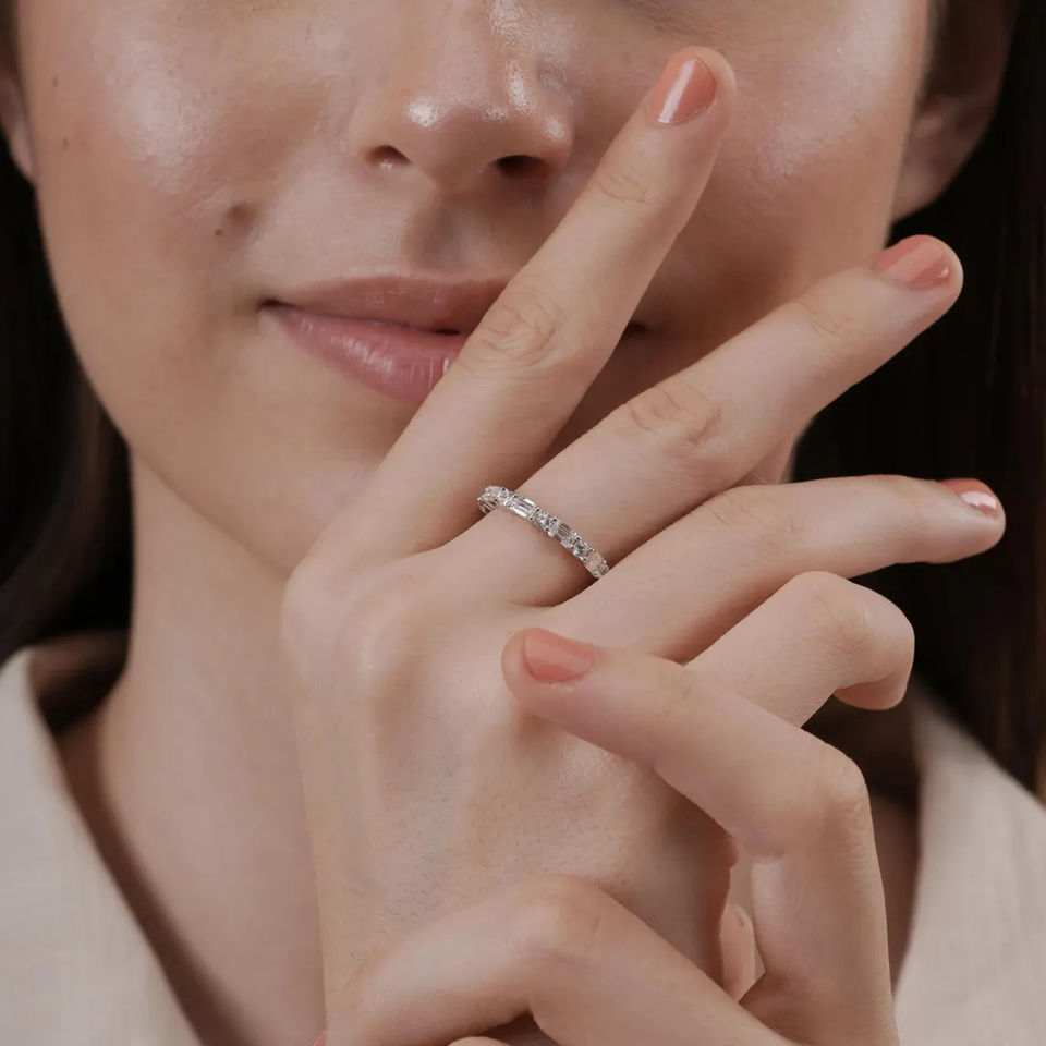 แหวนเพชรทรงเหลี่ยมมรกตและทรงกลมเจียระไนแบบบริลเลียนท์ เพชรสร้างในห้องปฏิบัติการ ระดับความสะอาด VVS2 แหวนเพชรแท้รับรองคุณภาพ ทอง 18K แหวนแต่งงาน เครื่องประดับ