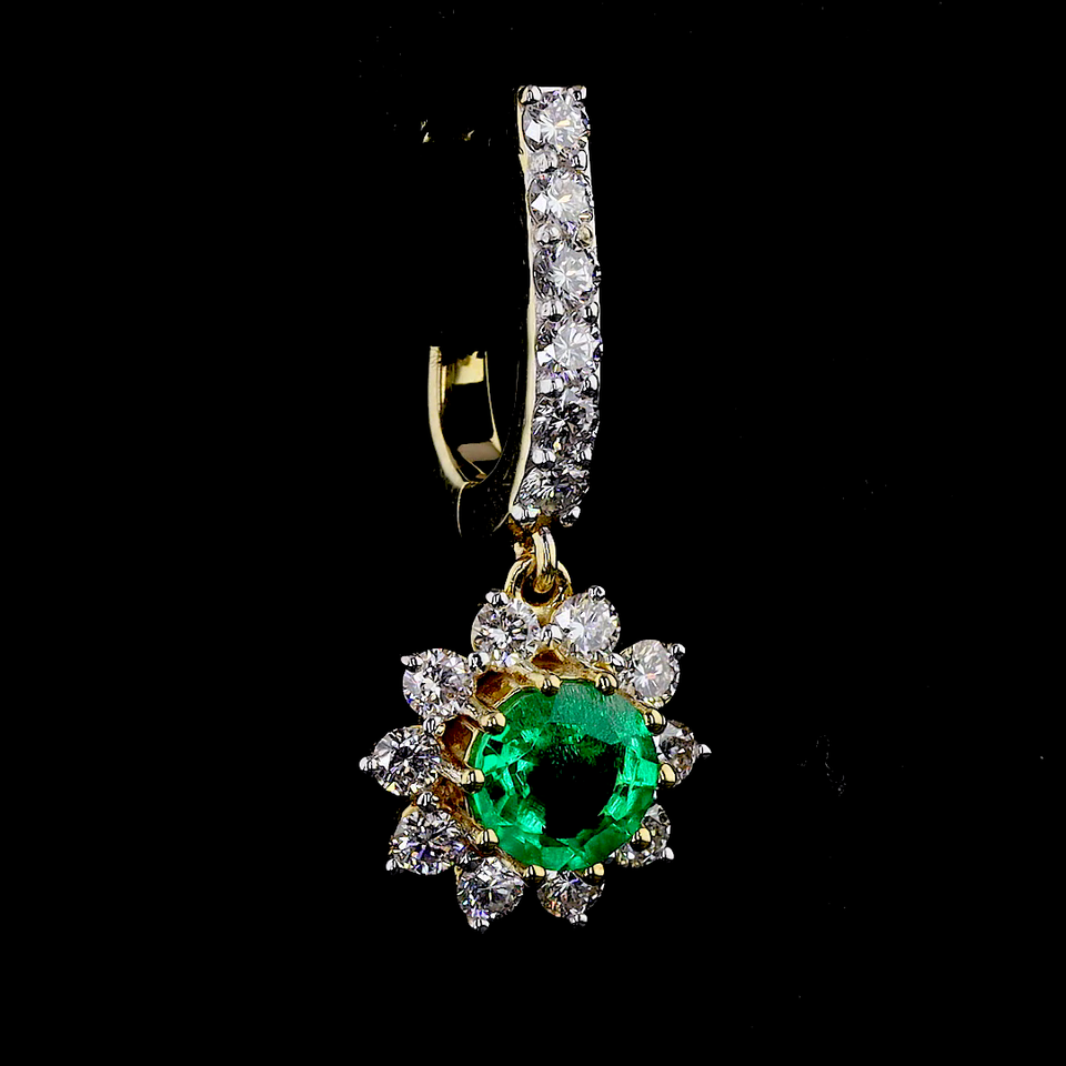 ต่างหูเพชรทรงวงแหวนประดับมรกต ชุบทอง 14K ดีไซน์ดอกไม้คลาสสิก เพชร VVS2 ความใสระดับ Brilliant Cut รับรองโดย IGI เพชรเพาะเลี้ยงในห้องปฏิบัติการ