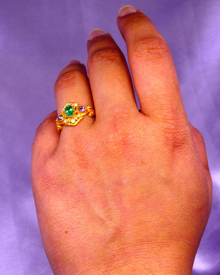 แหวนเพชรมรกตสุดหรูแหวนทอง14k ประดับอัญมณีมรกตแฟชั่นหรูหราคลาสสิก