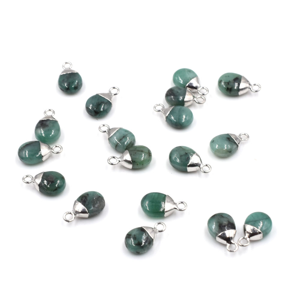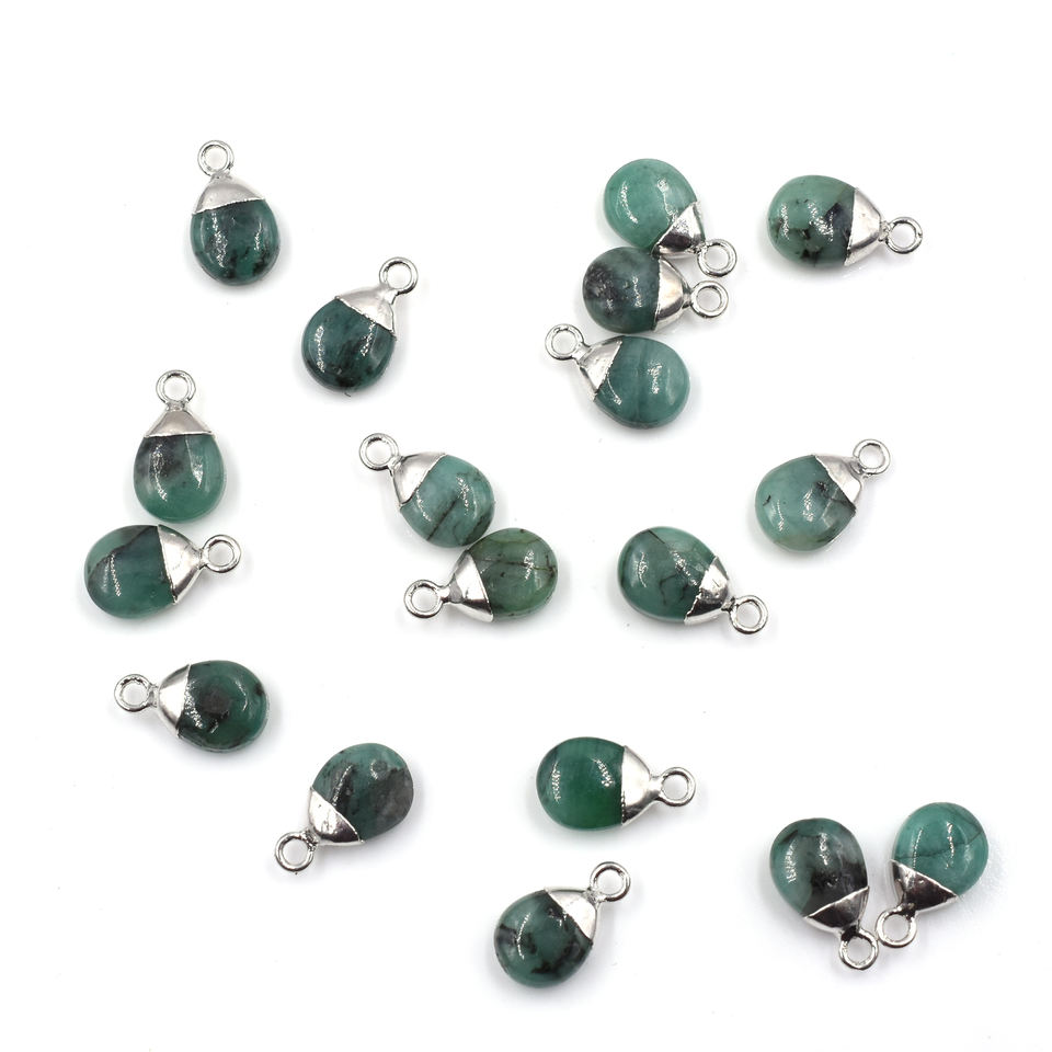 ชื่อสินค้า:มรกต ขนาด 11 ถึง 13 มม. พร้อมห่วงจี้ทรงหยดน้ำ ชุบเงิน