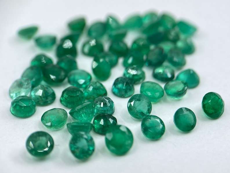 พลอยมรกตทรงกลมเหลี่ยมเพชรพลอย ขนาดต่างๆ 1.5 มม. ถึง 6 มม. สำหรับทำเครื่องประดับ