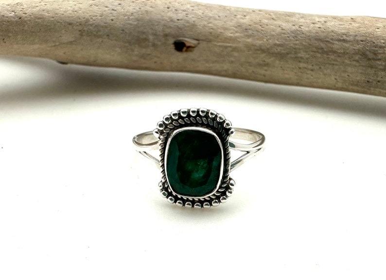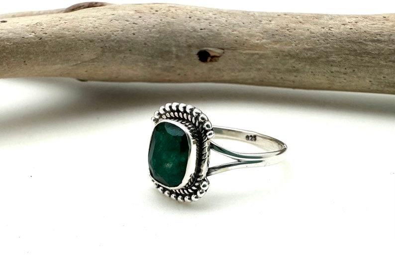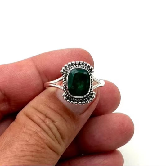 เครื่องประดับพลอยมรกตสำหรับผู้หญิงแหวนเงินสไตล์ Boho เครื่องประดับ925เงินสเตอร์ลิงของขวัญแหวนแฮนด์เมดสำหรับคุณแม่