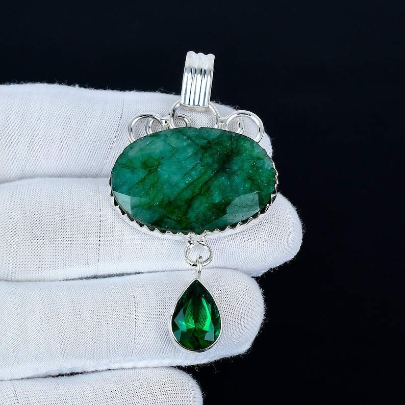 จี้มรกตประดับด้วยพลอยมรกตแวววาว