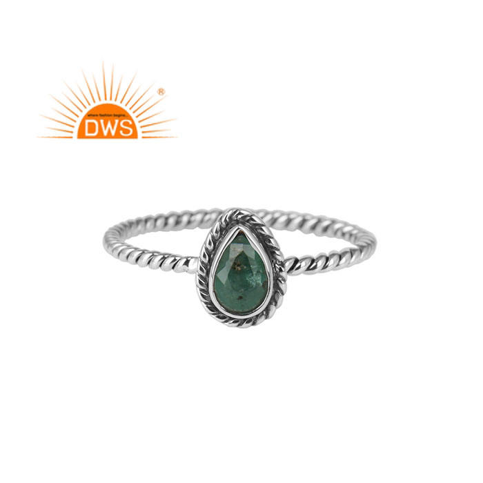 Emerald Gemstone Ring Oxidized Sterling Silver Twisted Wire Ring Handmade Silver Jewelry Manufacturer