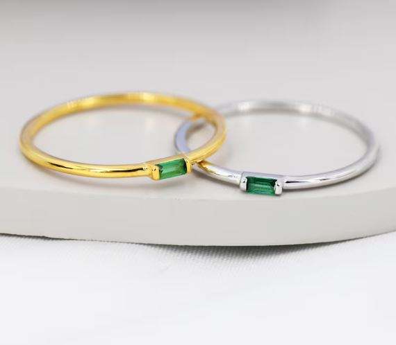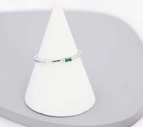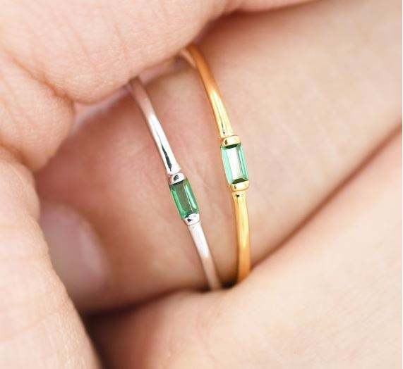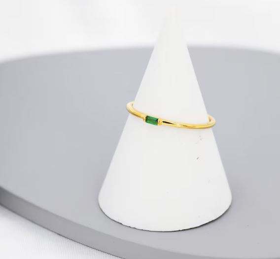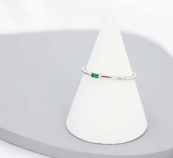 แหวนเงินแท้ประดับเพชร CZ ทรงบาแกตต์สีเขียวมรกต หรือแหวนเงินแท้หรือทองคำประดับเพชร CZ ทรงบาแกตต์แบบมินิมอล