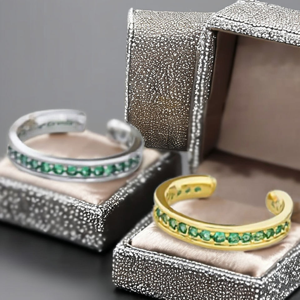 ต่างหูแบบหนีบสีเขียวมรกตประดับเพชร CZ เงินแท้ชุบทอง ไม่ต้องเจาะหู ดีไซน์มินิมอลสำหรับผู้หญิง