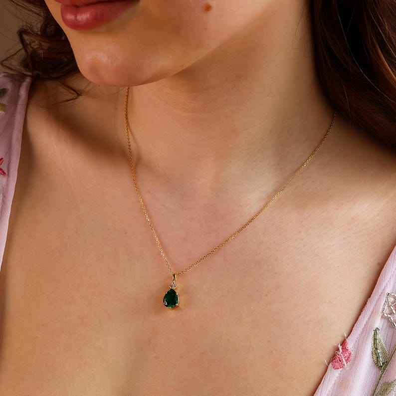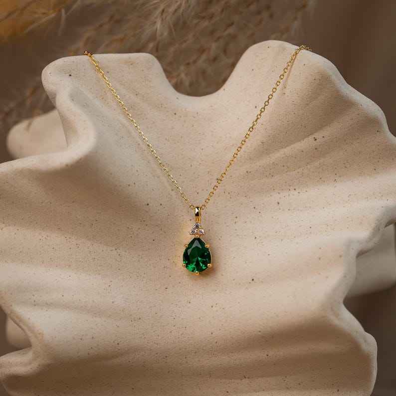 จี้เพชรพลอยสีเขียวมรกต เงินแท้ 925 ชุบทอง 14K แบบเวอร์เมล ของขวัญสำหรับเด็ก รูปทรงหยดน้ำ