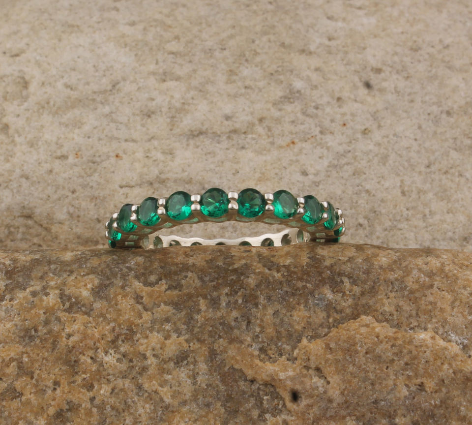 แหวนเงินแท้ทรงกลมประดับพลอยสีเขียวมรกตทรงกลมเจียระไนแบบเบเซล สำหรับผู้หญิง เครื่องประดับประจำเดือนพฤษภาคม ขายส่งสำหรับงานปาร์ตี้