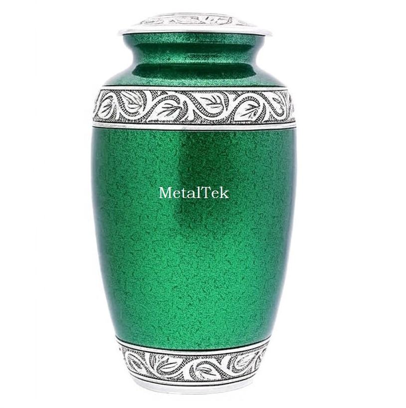 โกศใส่เถ้ากระดูกสีเขียวมรกตสำหรับผู้ใหญ่ภาชนะใส่เถ้ากระดูกแกะสลักลายดอกไม้ดีไซน์คลาสสิก
