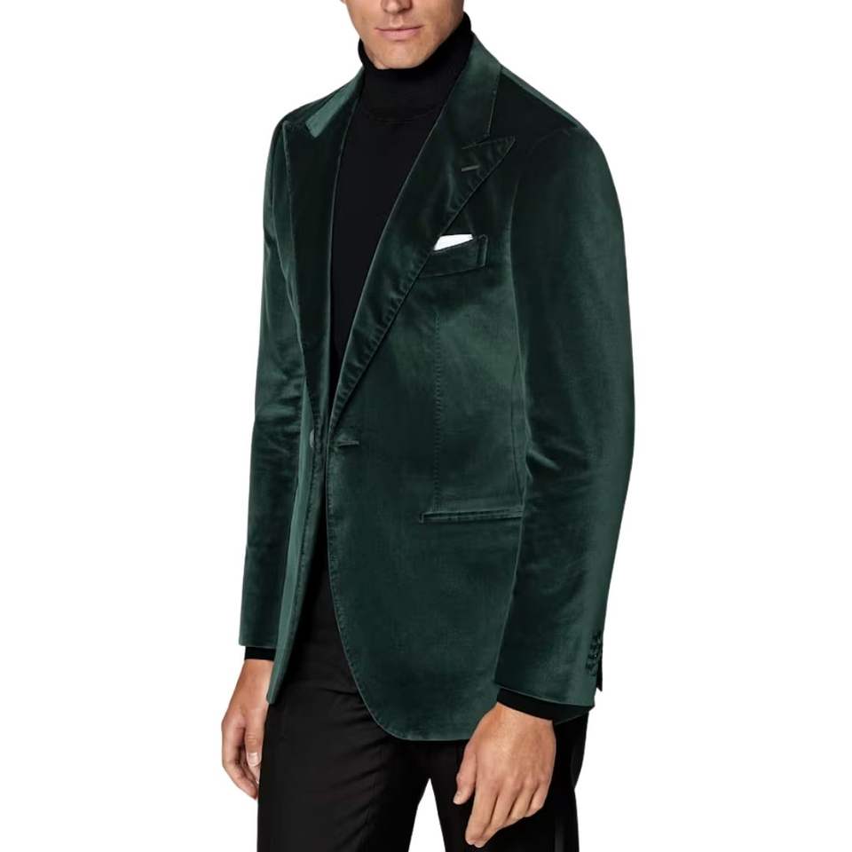 ชุดทักซิโด้สีเขียวมรกตสไตล์กำมะหยี่สำหรับผู้ชาย กระดุมเดียว ชุดออกงานกลางคืน แฟชั่นดีไซเนอร์ เบลเซอร์ ชุดเจ้าบ่าวสำหรับงานแต่งงาน