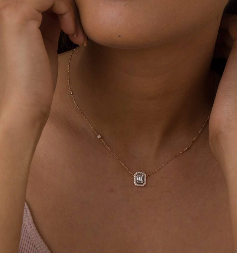 จี้เพชรเม็ดเดี่ยวทรงบาแกตต์สไตล์
