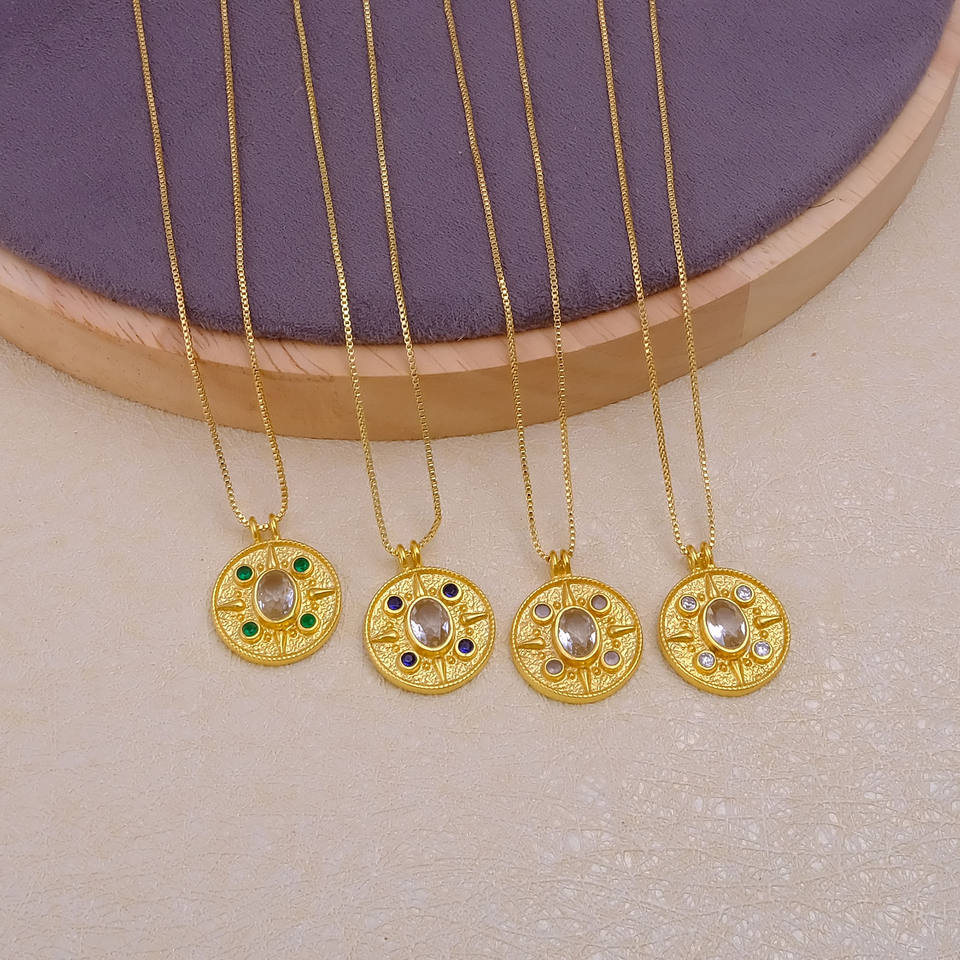 สร้อยคอเหรียญรูปวงแหวนประดับมรกตพร้อมพลอยสีชมพูตรงกลาง ดีไซน์วินเทจเคลือบทอง สำหรับผู้หญิง เหมาะสำหรับโอกาสต่างๆ