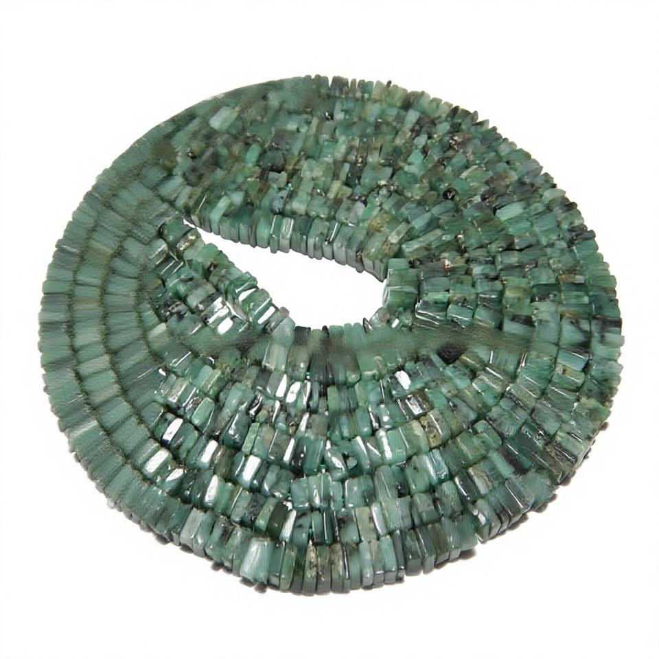 สร้อยคอพลอยทรงสี่เหลี่ยมลูกบาศก์สีเขียวมรกตขนาด 5x5.5 มม. ความยาว 16 นิ้ว รับรองโดยบุคคลที่สาม ขายส่ง