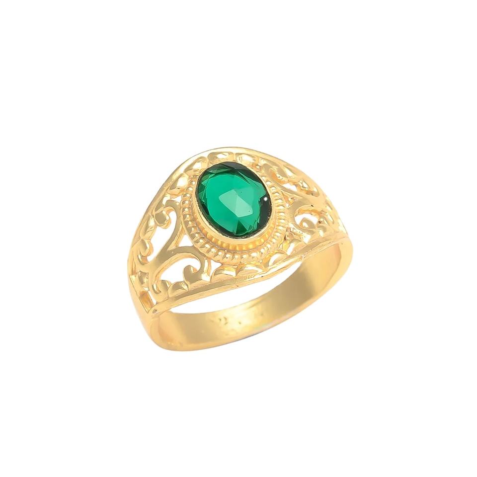 แหวนทองประดับอัญมณีทรงกลมมรกตแหวนพลอยชุดปาร์ตี้แหวนลำลอง