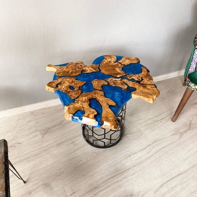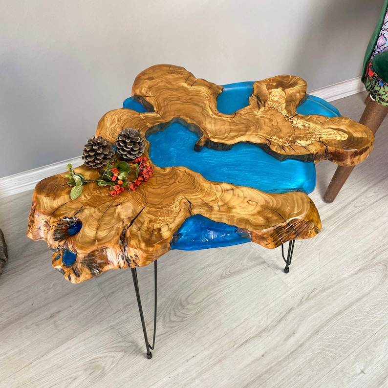 โต๊ะกาแฟเรซิ่นสีเขียวมรกตแบบขอบธรรมชาติ ตกแต่งด้วยสีเทอร์ควอยซ์ เป็นมิตรกับสิ่งแวดล้อม วาดลายด้วยมือ ปรับแต่งได้