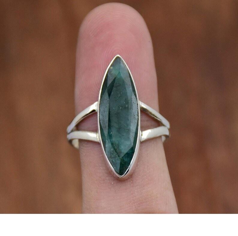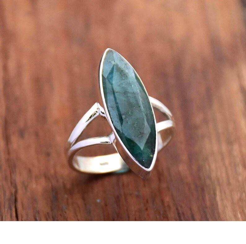 แหวนพลอยมาร์คีสโตนสีมรกตวงแหวนแยกสไตล์โบโฮสำหรับผู้หญิงแหวนครบรอบมรกต