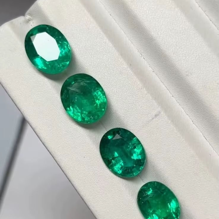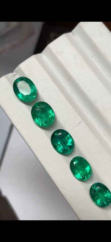พลอยมรกตธรรมชาติจากแซมเบีย รูปทรงวงรี คุณภาพสูง สีสวยงาม รูปทรงสวยงาม พลอยเม็ดเดี่ยวสำหรับทำเครื่องประดับ