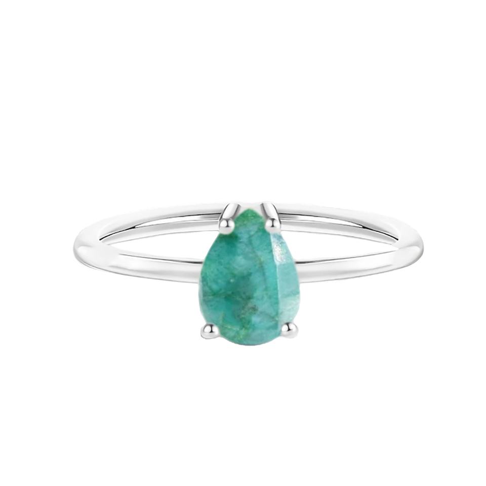 แหวนพลอยมรกตทรงลูกแพร์เจียระไนในตัวเรือนเงินแท้ 925 | แหวนหินสีเขียวแฮนด์เมดสำหรับผู้หญิง
