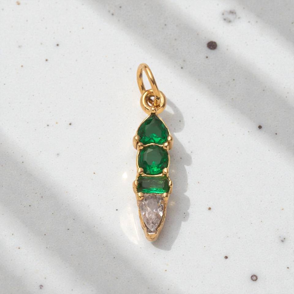 จี้ห้อยคอประดับพลอยควอตซ์สีเขียวมรกตทรงผสม | เครื่องประดับชุบทอง 14K เงินแท้ 925 ดีไซน์สวยงาม สำหรับทำสร้อยคอและสร้อยข้อมือ