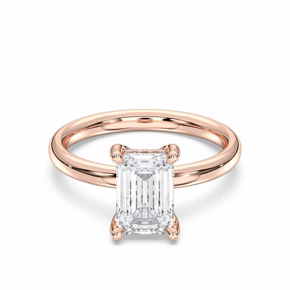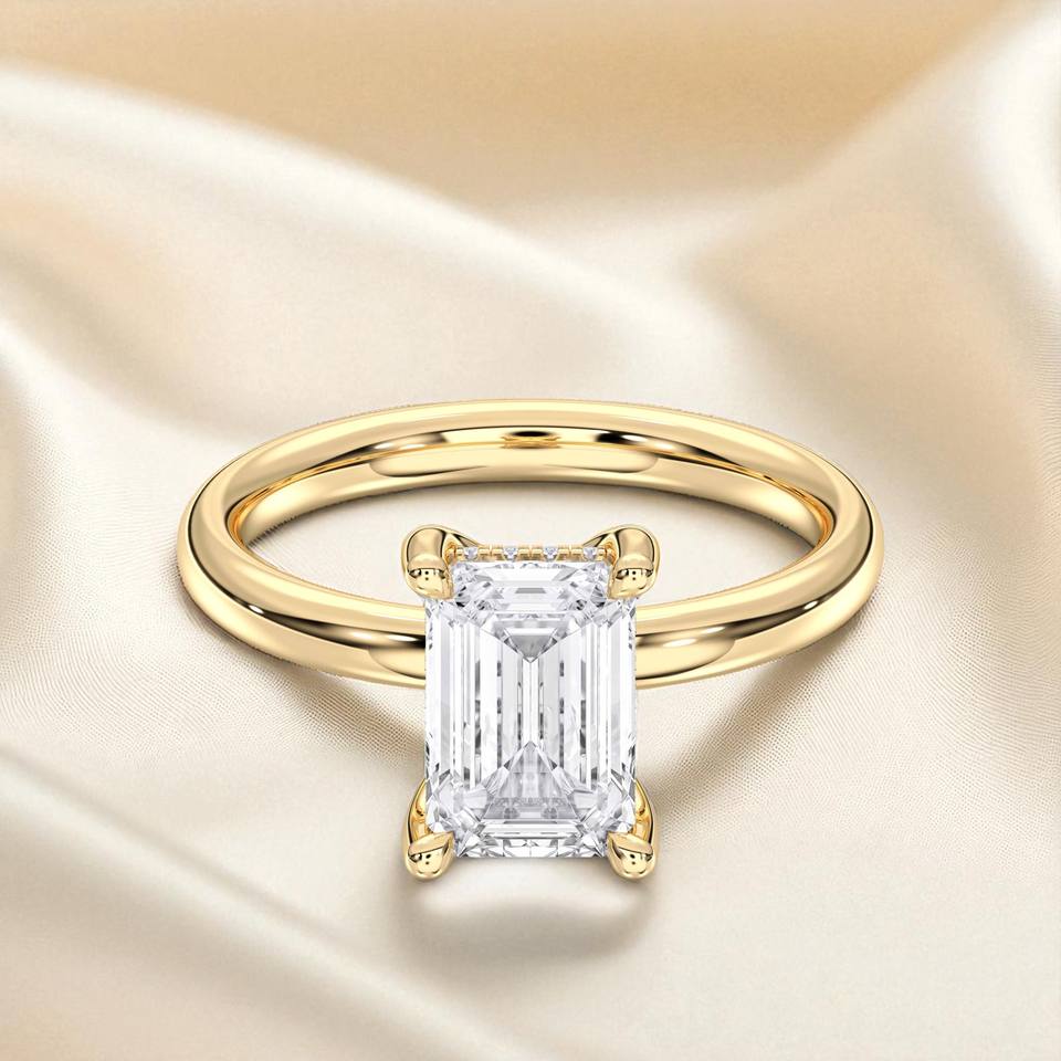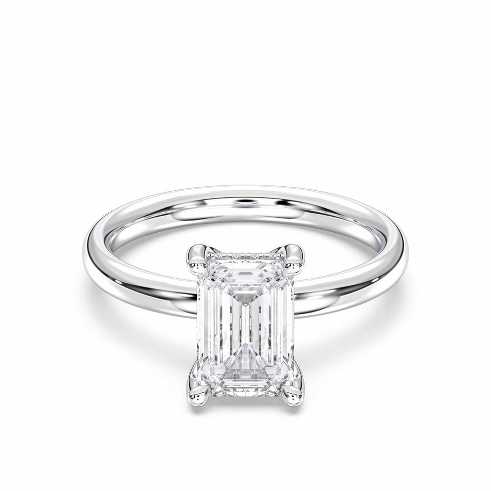 แหวนหมั้นเพชรโมอิสซาไนต์ทรงกลมและทรงเอเมอรัลด์ น้ำหนัก 2.16 กะรัต ระดับความสะอาด E-F/VVS VS ตัวเรือนเงิน สำหรับผู้หญิง