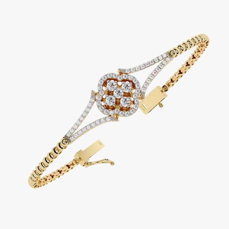 สร้อยข้อมือเพชรเม็ดกลมสีมรกตสีเหลืองทอง18K พร้อมเพชรโมอิสสำหรับงานแต่งงาน