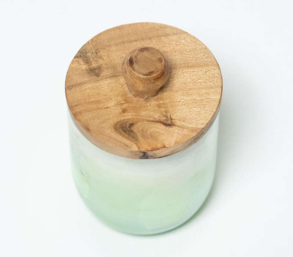 เทียนหอมขี้ผึ้งถั่วเหลือง5.5ออนซ์สีเขียวมรกตพร้อมฝามะม่วงสินค้าปรับแต่งได้